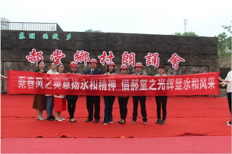 朗誦現(xiàn)場文化氛圍濃厚,有弘揚中華傳統(tǒng)文化的、有歌頌中國大好河山的、有贊揚郝堂美麗景色的、還有一些民間藝術(shù)舞蹈的,永和集團(tuán)也很榮幸受邀參加了此次活動。我們公司在李靜副總經(jīng)理的帶領(lǐng)下為大家?guī)砹嗽娎收b《永和頌》,整首詩講述了永和集團(tuán)的輝煌歷史、表達(dá)了永和集團(tuán)人的高尚情懷以及永和集團(tuán)的突出貢獻(xiàn)。