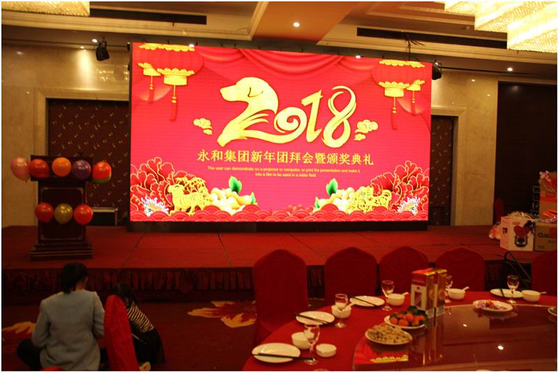 農(nóng)歷臘月二十六,信陽中樂百花酒店三樓的百花廳流光溢彩、賓朋滿座,在2018年新年到來之際,永和集團在中樂百花酒店舉辦了新春團拜會暨表彰大會,永和集團及所屬子公司的全體員工攜家屬及合作商出席了團拜會。