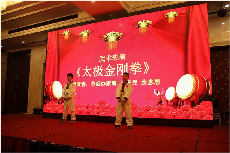 年會中,員工及家屬們積極踴躍展示才藝,節(jié)目繽紛多彩,令人眼花繚亂,應(yīng)接不暇,既有萌萌的兒童舞,又有百靈鳥般的優(yōu)美歌聲,還有少林小武者的中華武術(shù)表演,更有大師級的現(xiàn)場潑墨,大家紛紛上臺,一展才華·······精彩的節(jié)目獲得了觀眾的陣陣掌聲和喝彩。