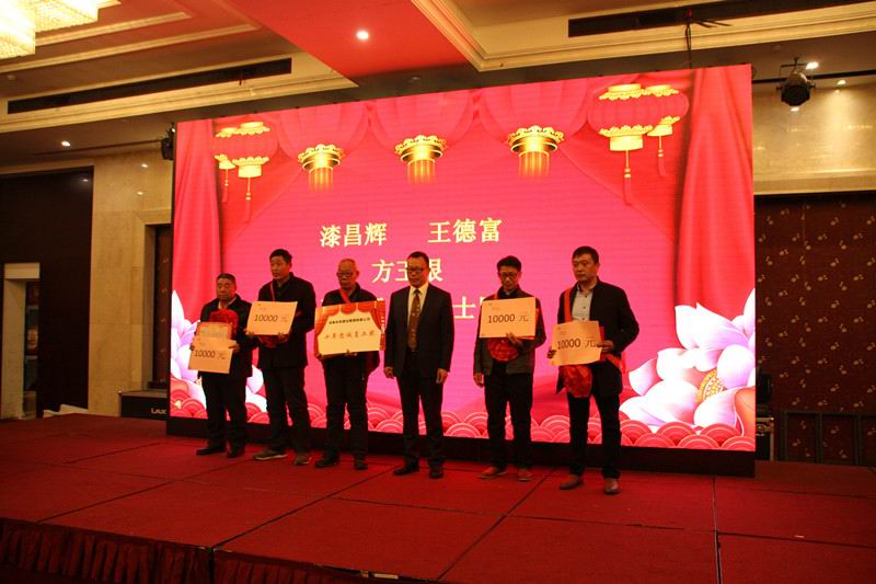 隨后,孔總對2017年年度工作中取得優(yōu)異成績、做出特殊貢獻的員工進行了表彰,頒獎典禮中,孔總親自為被表彰者佩戴大紅花、頒發(fā)榮譽證書及獎金。